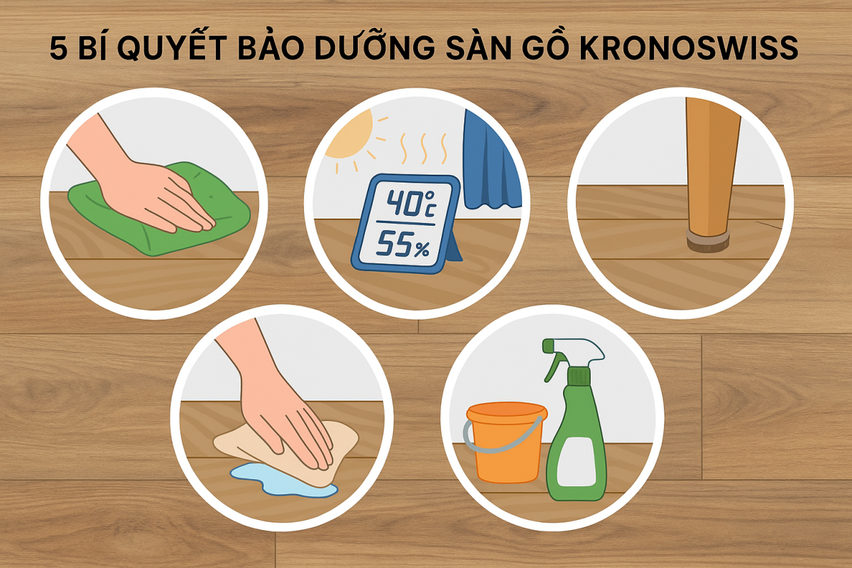Sàn gỗ Kronoswiss nổi bật với chất lượng chuẩn Thụy Sĩ, độ bền vượt trội và tính thẩm mỹ cao. Tuy nhiên, để sàn luôn bền đẹp qua thời gian, bạn cần biết những mẹo bảo dưỡng khoa học thay vì chỉ vệ sinh thông thường. Dưới đây là 5 bí quyết giúp sàn Kronoswiss […]